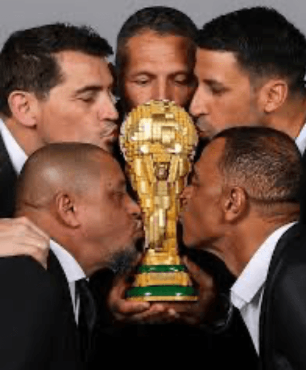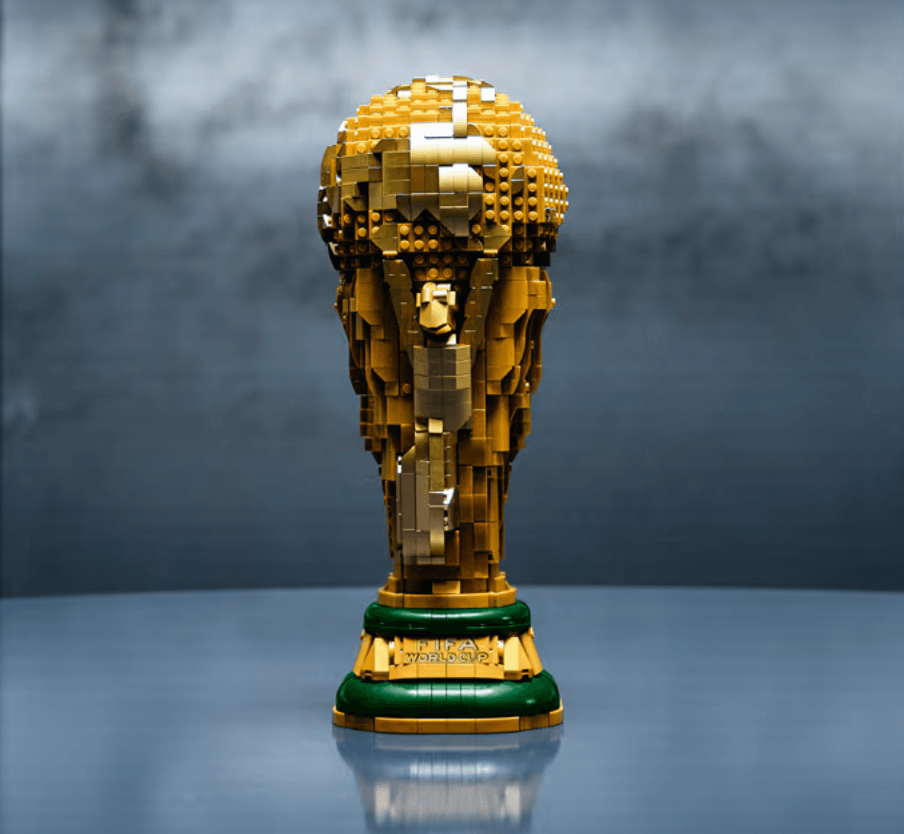 Meses antes de que cayera el spot ya legendario del Mundial 2026, LEGO estaba sembrando el ecosistema. Una reunión de leyendas del fútbol mundial — Cafú, Iker Casillas, Marco Materazzi, Sami Khedira, Roberto Carlos — presentando la Copa. Cámaras rodando. Legends Go All In. El hashtag: #EveryoneWantsAPiece.