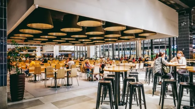 El patio de comidas es otra de las grandes apuestas del centro comercial. Se renovó en línea con las tendencias deco del momento, ofreciendo un ambiente cálido y más cómodo. Se eligió un estilo moderno e industrial de hierro negro y madera que se mezcla con revestimientos brillantes para generar contraste y luz de calidad. A su vez, la llegada de reconocidas marcas como The Embers, Pani, Panera Rosa y El Club de la Milanesa se suman a su propuesta gastronómica.