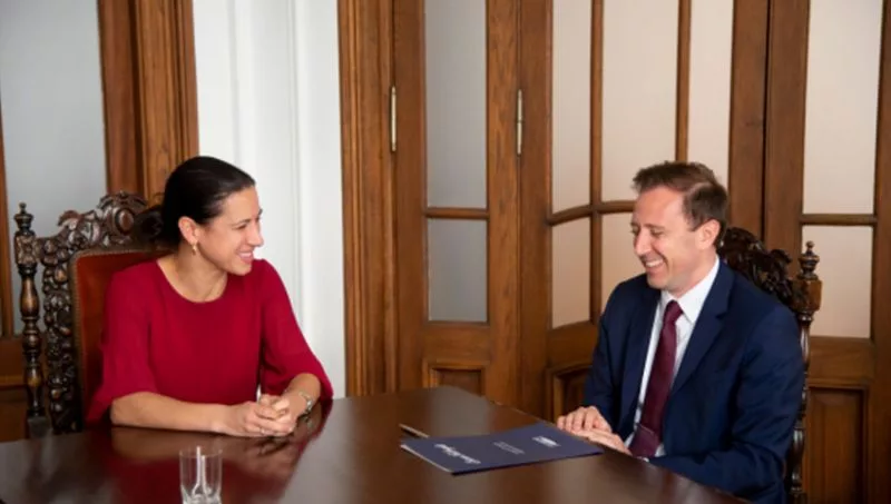 Andrés Echevarría, socio del estudio Vivanco & Vivanco, y Michelle Riebeling, Public Affairs Office - U.S. Embassy, Buenos Aires, en representación de la Comisión Fulbright, firmaron un acuerdo de cooperación para el lanzamiento de la beca Vivanco & Vivanco en las oficinas de la Comisión Fulbright
