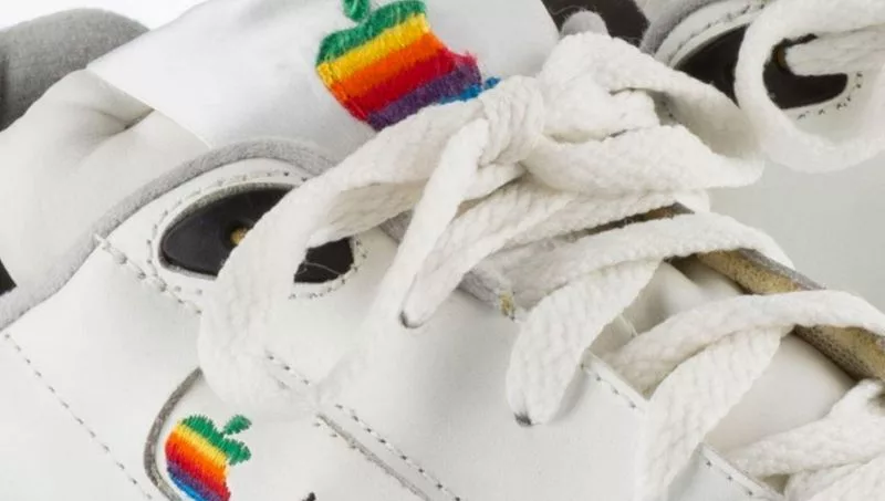Sotheby's está subastando actualmente un par de zapatillas Omega Sports Apple Computer, originalmente fabricadas para los empleados de Apple en la década de 1990. Estas zapatillas blancas adornadas con el antiguo logo arcoíris de Apple son una joya rara para cualquier entusiasta de la tecnología o coleccionista de moda.