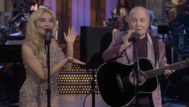 Paul Simon y Sabrina Carpenter: El legendario cantautor interpretó "Homeward Bound" junto a la estrella pop, marcando el inicio de una noche llena de música.
