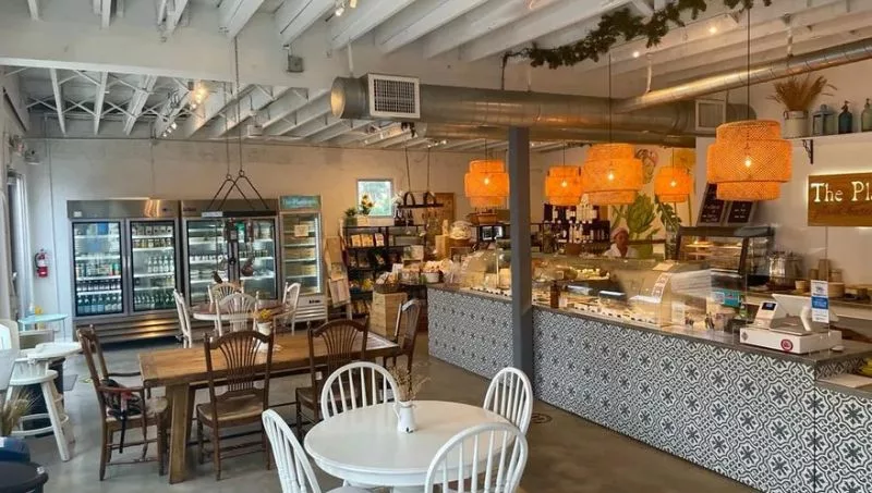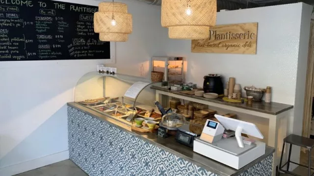 The Plantisserie, un enorme local blanco, rodeado de un patio e impecables detalles vintage, es un concepto de delicatessen orgánico a base de plantas en Little River que ofrece alimentos saludables preparados a base de plantas por peso.