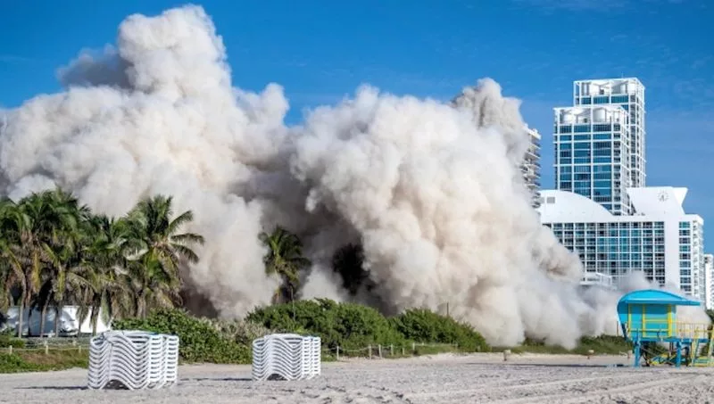 Tras la destrucción, una nube de polvo blanco cubrió los edificios de la primera línea de playa y se desvaneció al poco tiempo.