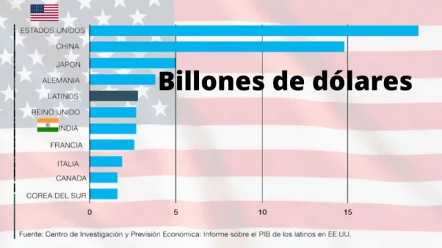 Según la investigación, el PIB de la comunidad Latina en USA en 2020 fue de 2.8 billones de dólares y si esta fuera la población de un país independiente su aporte económico sería el quinto más grande después de Estados Unidos, China, Japón y Alemania.