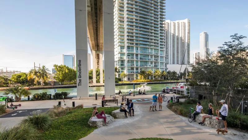 Cuando en 2013 Meg Daly se rompió los dos brazos y comenzó a ir a rehabilitación en tren porque no podía conducir, descubrió algo inaudito: en el Gran Miami aún quedaba una enorme área por explotar, eso sí estaba ‘oculta’ bajo las vías del Metrorail. Imaginó entonces un espacio de recreación pública, un lugar por el que salir a correr o caminar y en el que reunirse para compartir inquietudes artísticas y humanas. Se asoció con el equipo multidisciplinar James Corner Field Operations (al frente del proyecto del Highline de Nueva York) y así nació The Underline, un sendero y parque urbano de casi 50 hectáreas, que transcurre bajo el trazado de las vías, a lo largo de unos 16 kilómetros.