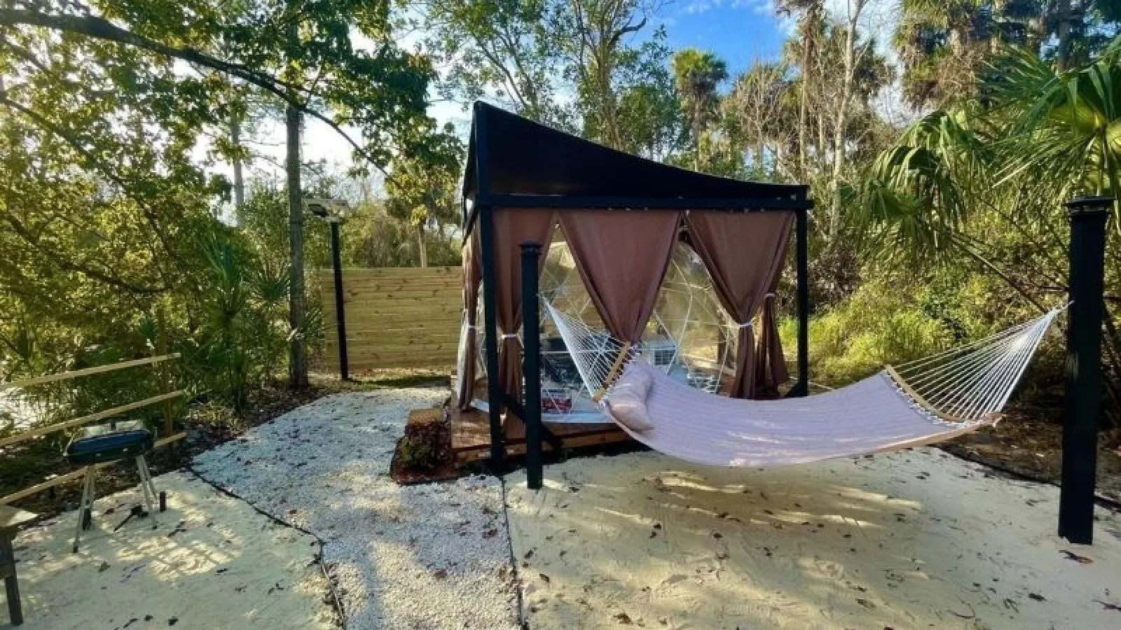 Glamping de lujo en su máxima expresión, este campamento de Clermont cuenta con una tienda de campaña de 18 m2 dentro del Parque Estatal Lake Louise. No vas a tener que sacrificar los lujos del hogar acá, ya que la ropa de cama, las almohadas y las mantas son de primer nivel al igual que los baños a pocos pasos de la tienda. También podrás disfrutar de una fogata para dos, un pabellón privado con una mesa de picnic y una parrilla. Ideal para realizar una caminata escénica, disfrutar de un remo al amanecer o mirar los fuegos artificiales de los parques temáticos cercanos.