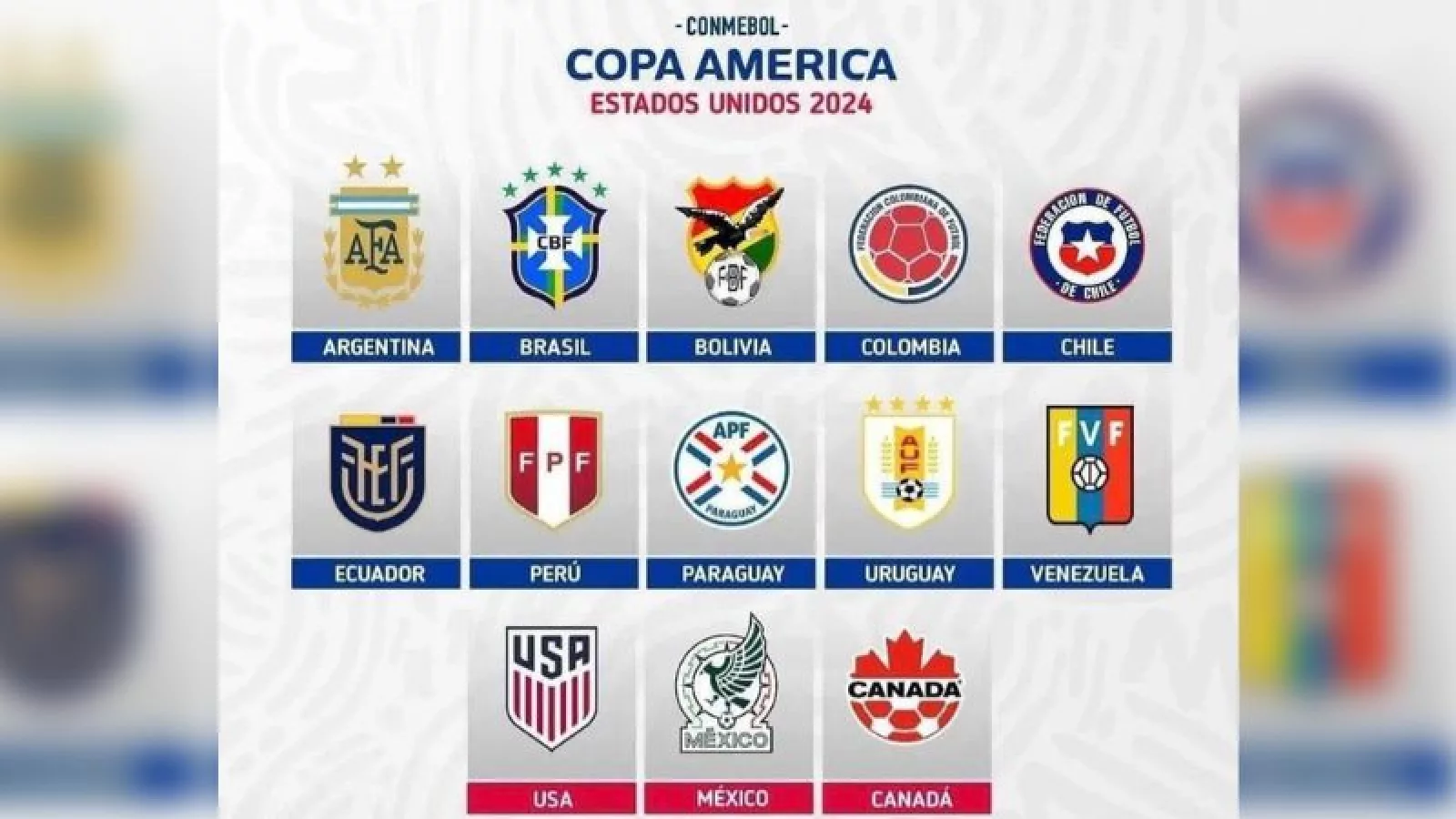 Son 10 selecciones que participarán por parte de Conmebol en la próxima edición de la Copa América 2024. Además, la Conmebol detalló que se incluirán seis equipos invitados de la Concacaf. En total, la Copa América de Estados Unidos contará con 16 participantes: