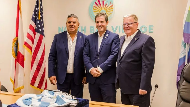 El presidente de la AFA, Claudio Tapia, firmó un contrato días pasados, en coordinación de agenda con la presencia del seleccionado de dicho país, para el partido que realizó en Miami; dicho contrato con la ciudad de North Bay Village tiene como fin la construcción de canchas de fútbol, un centro comunitario y una academia.