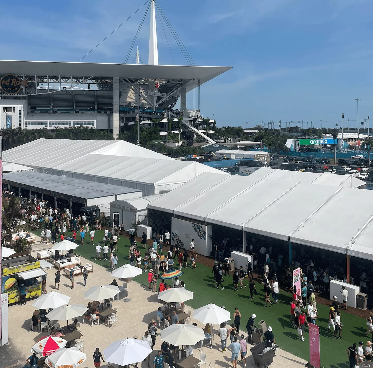 El Fan Fest en Lummus Park (miércoles a domingo) lleva la F1 al océano con acceso gratuito (pase especial requerido): transmisiones en vivo, conciertos, DJs, esculturas de arena, zonas Red Bull y Aston Martin. Es una activación masiva que democratiza la experiencia, atrayendo multitudes sin entradas costosas .