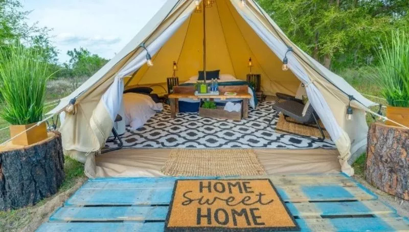 Glamping de lujo en su máxima expresión, este campamento de Clermont cuenta con una tienda de campaña de 18 m2 dentro del Parque Estatal Lake Louise. No vas a tener que sacrificar los lujos del hogar acá, ya que la ropa de cama, las almohadas y las mantas son de primer nivel al igual que los baños a pocos pasos de la tienda. También podrás disfrutar de una fogata para dos, un pabellón privado con una mesa de picnic y una parrilla. Ideal para realizar una caminata escénica, disfrutar de un remo al amanecer o mirar los fuegos artificiales de los parques temáticos cercanos.