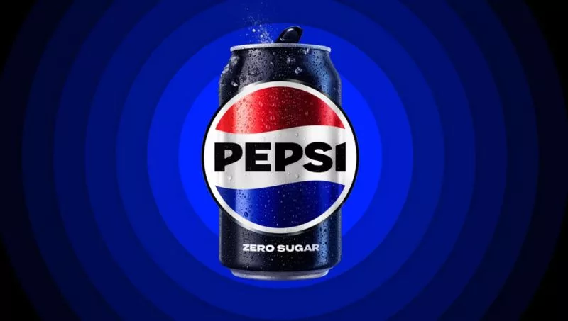 La esfera gana protagonismo en la nueva identidad de Pepsi y se ve reforzado por un fondo en un azul más oscuro y eléctrico y con el nuevo marco en negro.