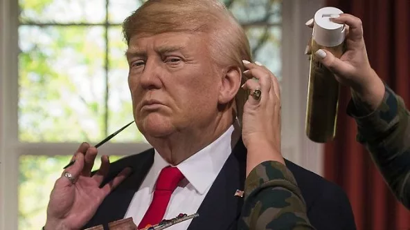 La elaboración de la figura de cera de Trump, que viste traje azul, camisa blanca y corbata roja, llevó a los artistas del museo Madame Tussauds más de seis meses. Los escultores mencionaron que lo más complicado de realizar fue el cabello.