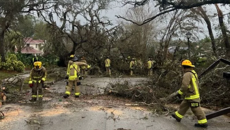 Seminole County Fire Department Captain Tod Zellers described the devastating scene at one of the destroyed homes: “We had to cut our way through fallen trees to get to the house. It was completely collapsed, except for a corner in the front, where, thankfully, the residents were at the time.”