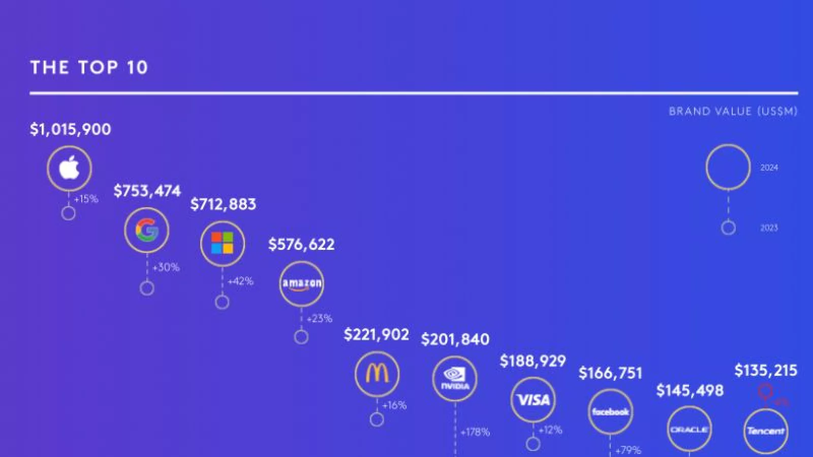 The total value of the 100 brands on the list amounts to $8.3 trillion, a 20% growth from the previous year.