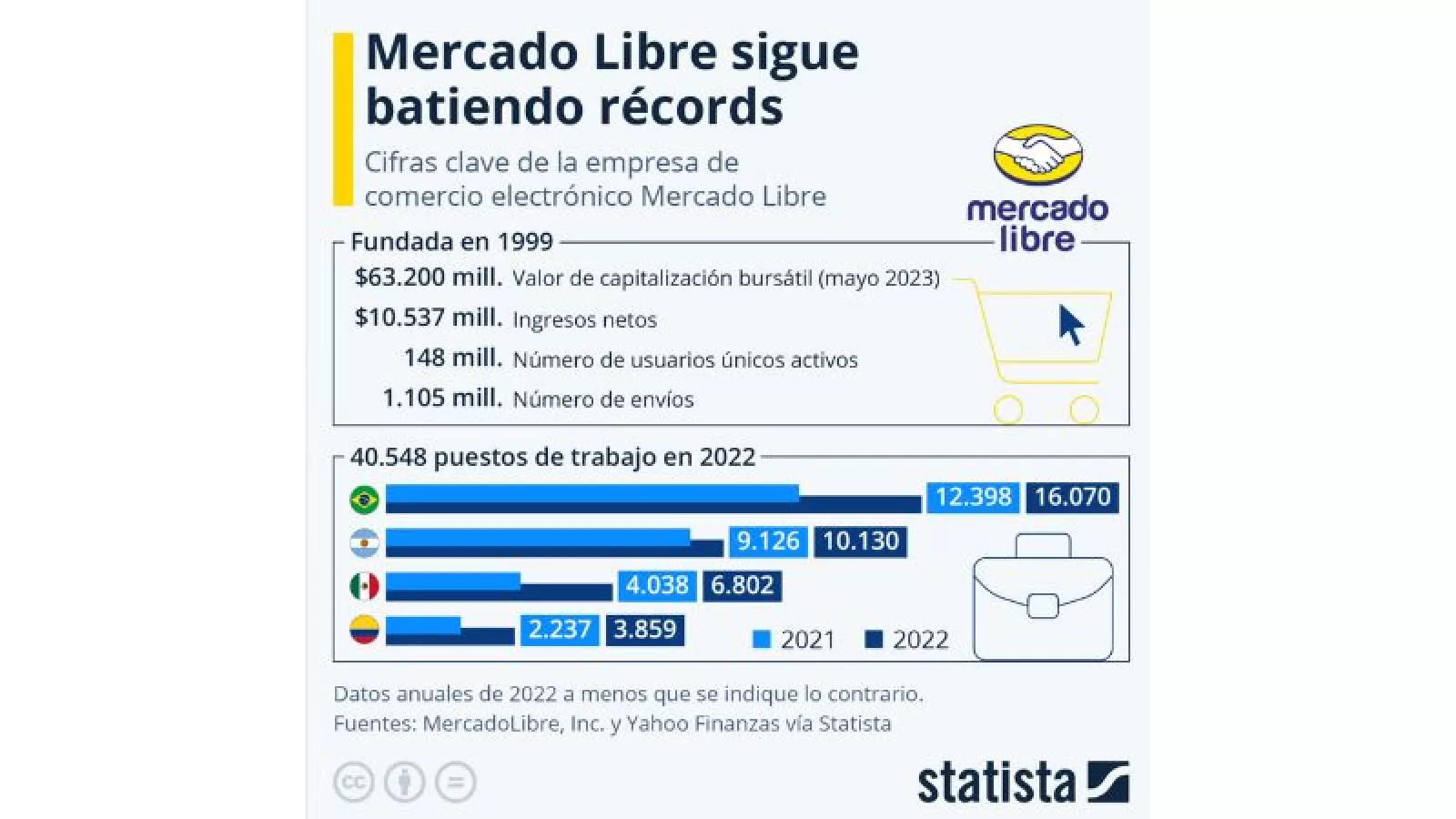 In 2022, Mercado Libre recorded a net income of nearly $10.537 billion, representing a 68.7% increase compared to the previous year. Additionally, the platform has an impressive user base, with 148 million users who made online purchases through the platform in 2022. This success is due in part to the company's expansion strategy throughout Latin America.