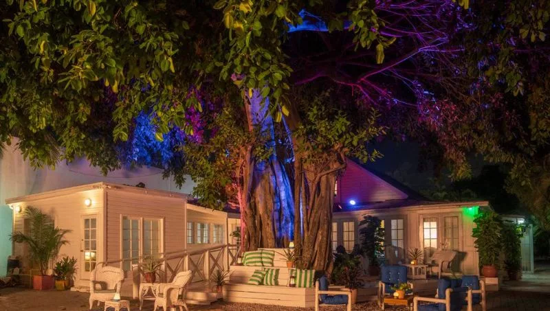 Cruzando el umbral entras en ZeyZey, un nuevo espacio para la música y la cultura (también para la comida y la bebida). Al pasar por esa puerta de madera, lo primero que encontrás es un pequeño mirador donde se vende vino natural y cerveza artesanal. Hay un bungalow con paredes blancas donde tocaran los DJ. También alberga una sala de escucha de vinilos, con más de 3000 discos. La gran área del patio trasero, bajo un enorme árbol de higuera de Bengala, incluye una barra de cócteles completa y un escenario para presentaciones en vivo. Hay cuatro vendedores de comida y tres salones privados.
