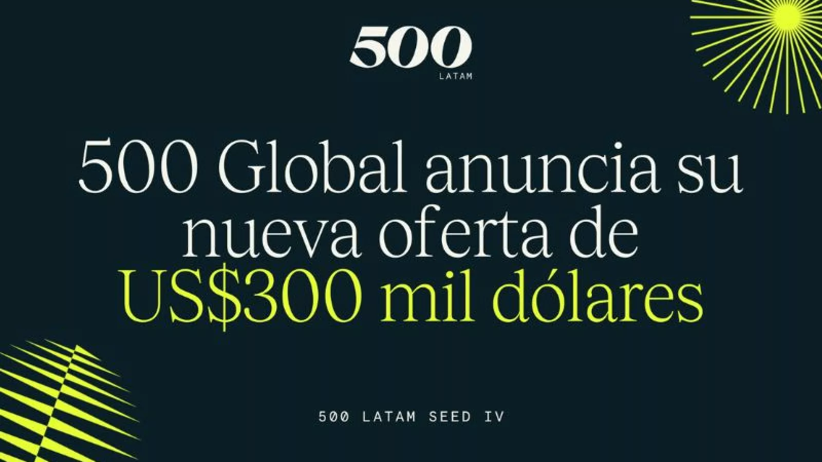 500 Global, una de las firmas de inversión en etapa temprana más activas del mundo, anuncia su nueva estrategia de inversión y programa para startups en etapa temprana en Latinoamérica, la cual, incluye un acompañamiento personalizado y más profundo para las startups que seleccionen, así como un incremento en el monto inicial de inversión de $80 mil a $300 mil dólares.