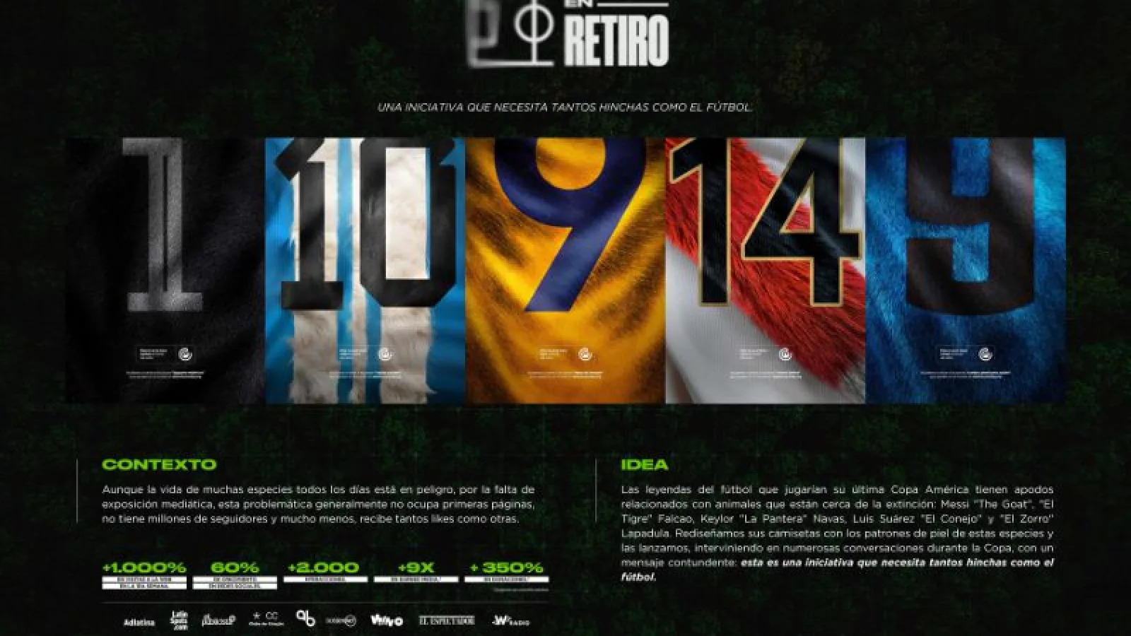 En un momento decisivo para muchas leyendas del fútbol están llegando al final de sus carreras, y aprovechando la atención generada por el torneo de selecciones más antiguo del mundo, Findasense y Fundación con Vida aprovecharon la conversación en redes sociales para dar visibilidad a las especies animales en peligro de extinción. Sin ningún tipo de presupuesto, y en un entorno donde el fútbol era el tema predominante, lograron destacar las verdaderas “especies en retiro” con un mensaje potente sobre la conservación de la fauna.