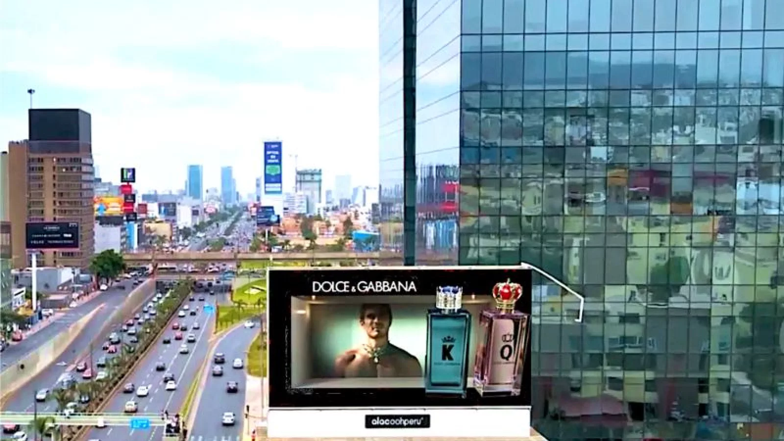 Latcom, empresa de estrategia, planificación y trading de medios a nivel mundial especializada en OOH, DOOH y Programmatic, presenta junto a Dolce & Gabbana la campaña OOH desarrollada para el lanzamiento de su nueva fragancia Q en la ciudad de Lima. Se trata de una creatividad especialmente diseñada para pantallas 3D, logrando un espectacular efecto tridimensional que, al agregar una nueva dimensión visual permite captar la atención del espectador creando una experiencia más inmersiva.