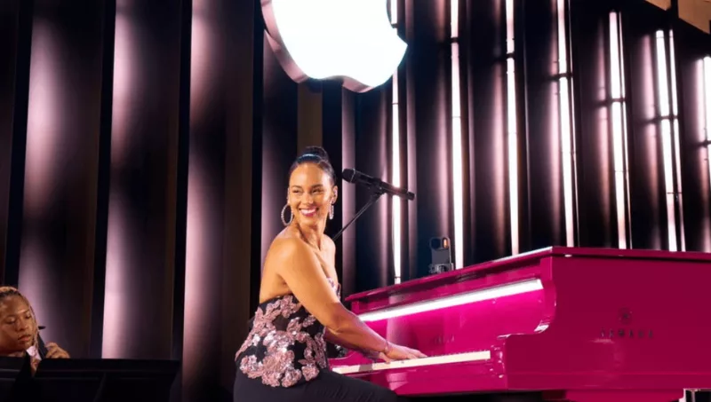 Alicia Keys — 17 Grammys, pioneira do Spatial Audio no Apple Music e estrela de uma das primeiras experiências imersivas no Apple Vision Pro — subiu a escadaria icônica da Apple Grand Central em Nova York e transformou uma loja numa catedral da criatividade. O iPhone 17 Pro captou cada nuance de luz, cada nota, cada instante de uma performance que não era entretenimento: era uma declaração de filosofia de negócios.