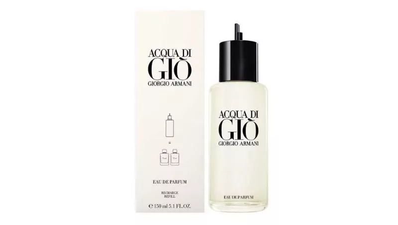 Por su lado, Giorgio Armani también ha diseñado frascos recargables de las 3 fragancias más conocidas de la marca: Acqua Di Gio, Code y My Way. De esta forma, se reducen un 31% las emisiones de carbono, un 43% el uso de cristal, un 67% de metal y un 22% en papel. My Way logró ser la primera fragancia con neutralidad de carbono como resultado de un programa de eco-concepción, a cubrir por completo la cadena de producción, desde la recolección de sus ingredientes hasta la realización del producto.