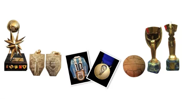 Entre los primeros objetos ofrecidos figura la medalla original bañada en oro de 3 centímetros de diámetro y presentada en su caja original emitida para Diego Armando Maradona por la Asociación del Fútbol Argentino (AFA) luego del campeonato que la selección de ese país logró en la Copa Mundial FIFA México 1986. El precio inicial de la medalla es de 7.500 dólares.