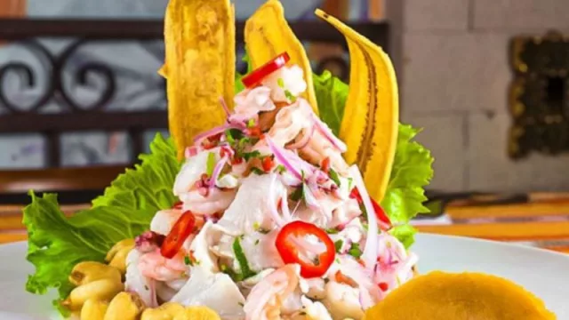 Ceviche: This iconic dish is made with fresh raw fish that is marinated in lime juice and served with onions, chili peppers, and cilantro. It's typically served with sweet potato, corn, and lettuce.