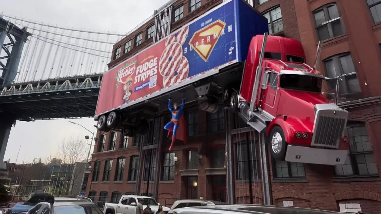 The crossing of Keebler and its jaw-dropping OOH (Out of Home) campaign is next level—Superman lifting a truck in New York City!